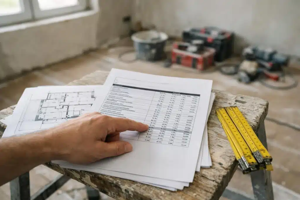 Para que la comparativa sea real, todas las empresas deben presupuestar sobre el mismo documento: el estado de mediciones. Este documento detalla cuántos metros cuadrados de suelo hay que cambiar, cuántos puntos de luz instalar o cuántos metros de tabiquería derribar. Sin esto, estarás comparando «peras con manzanas».